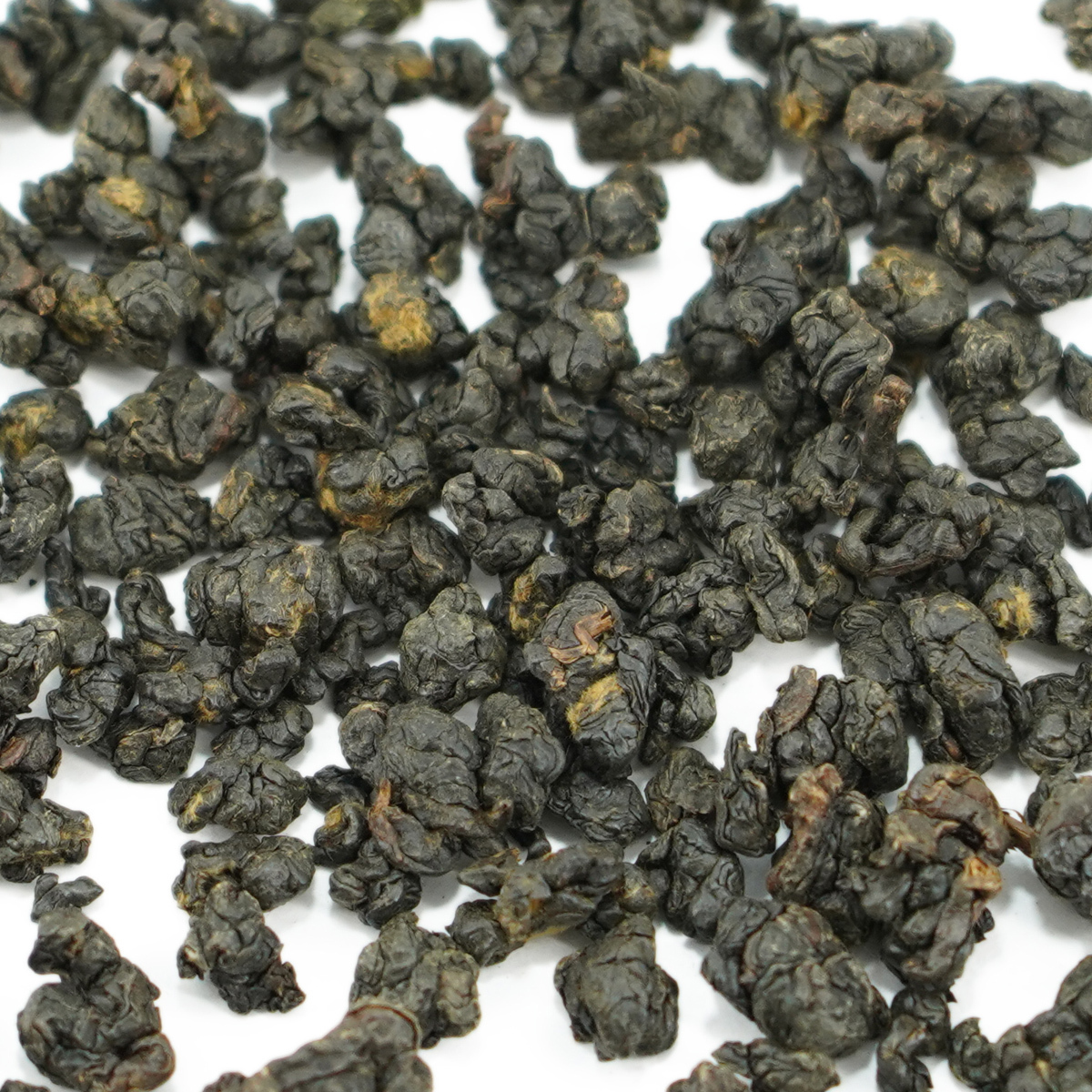 Скатанные в шарики чайные листья представляют собой длинные, изогнутые, темно-коричневые жгутики с тонкими черенками. Листья крупные и равномерно обработаны, что свидетельствует о высоком качестве обработки. Рассыпная форма чая делает его удобным для заваривания и позволяет лучше контролировать крепость настоя.