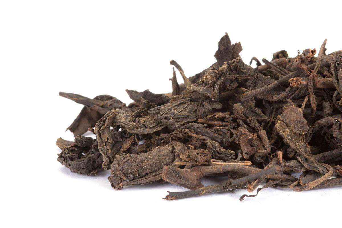 Внешний вид: Чайные листья имеют темно-коричневый цвет с рыжеватыми вкраплениями, что характерно для хорошо выдержанного Шу Пуэра. Листья могут быть как цельными, так и слегка ломаными, что не влияет на качество напитка.